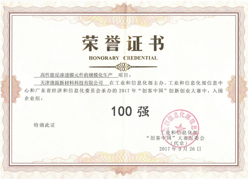 2017 Innovation and Entrepreneurship Competition top 100 in China