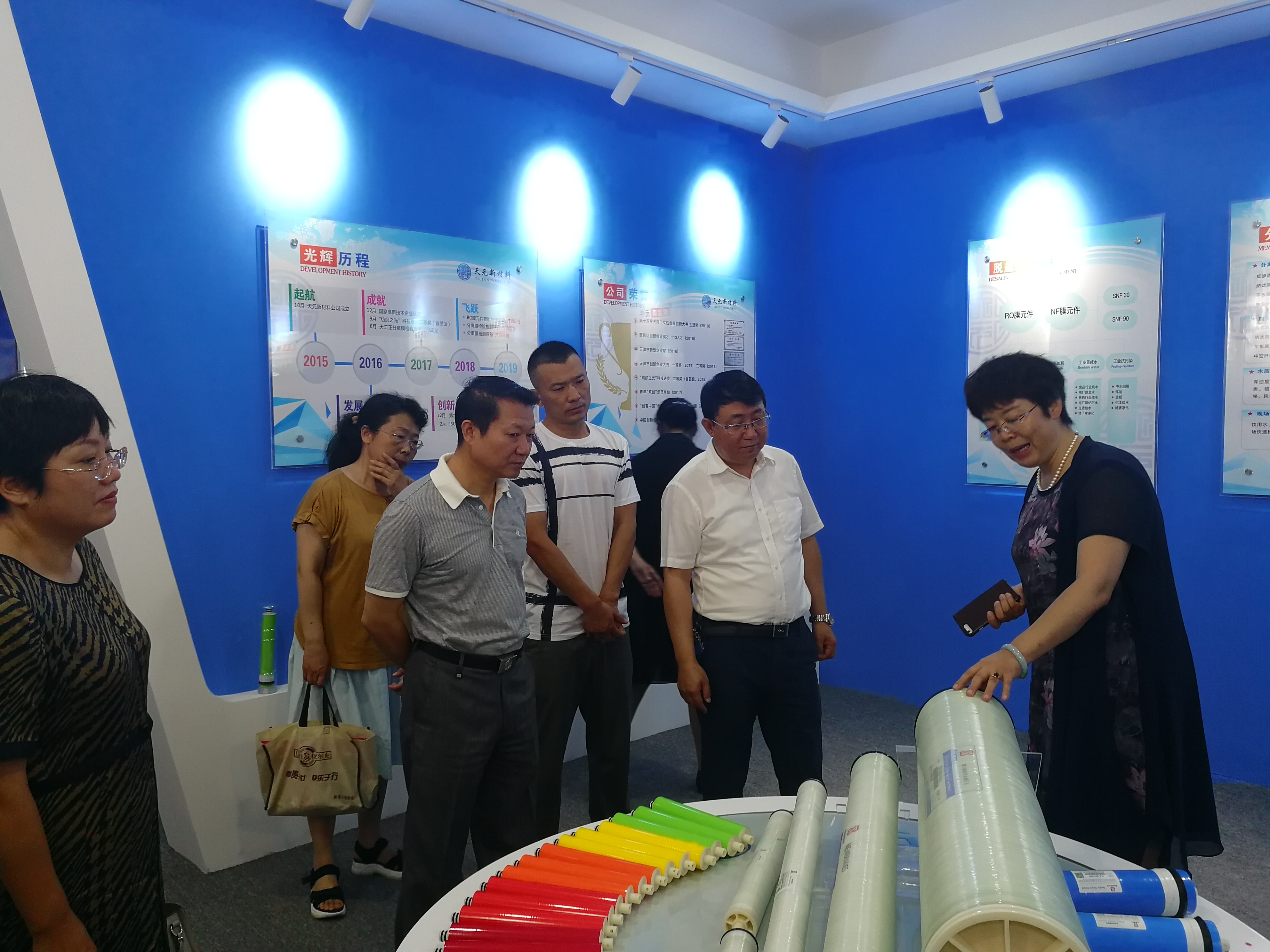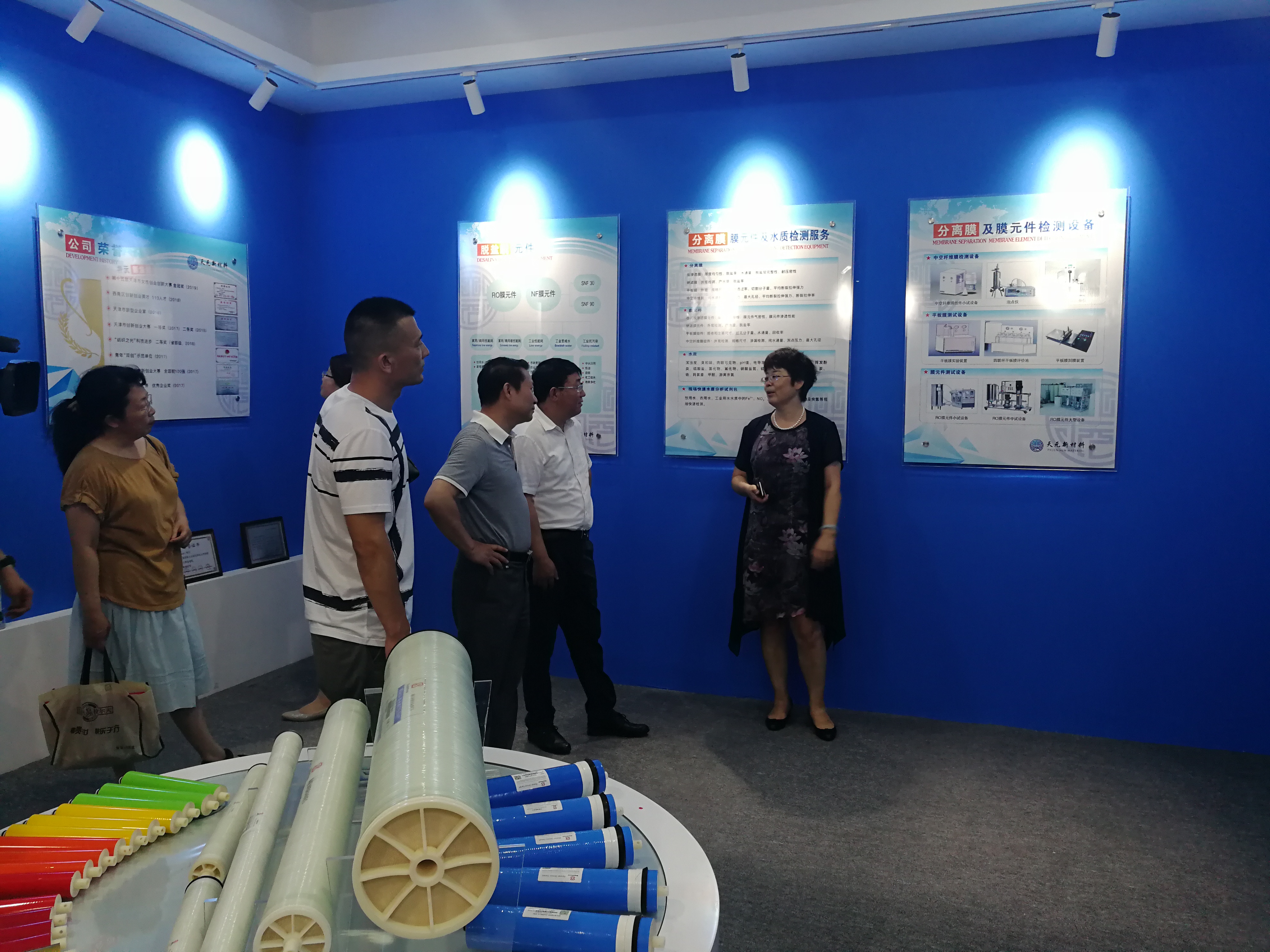 考察团一行人来到公司的展厅,通过展品以及王薇博士的讲解更深一步的了解了天元的产品,也对膜行业发展的现状前景、天元公司的技术优势等有了基础的认识。