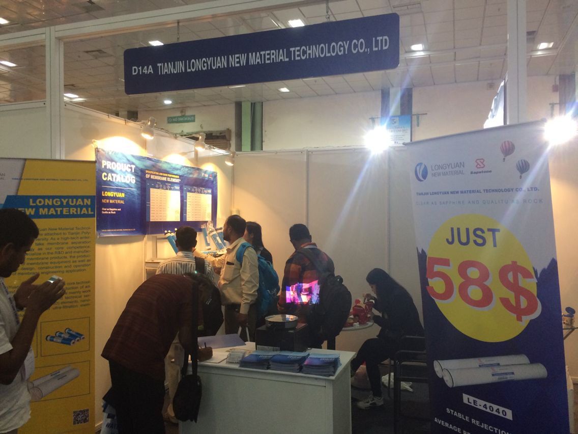 Tianjin Longyuan New Material Technology Co.,Ltd with Sapstone brand household, commercial, industrial, brackish water, pollution resistance and very low presssure full range specifications reverse osmosis (RO) membrane products more perfect at the exhibition.